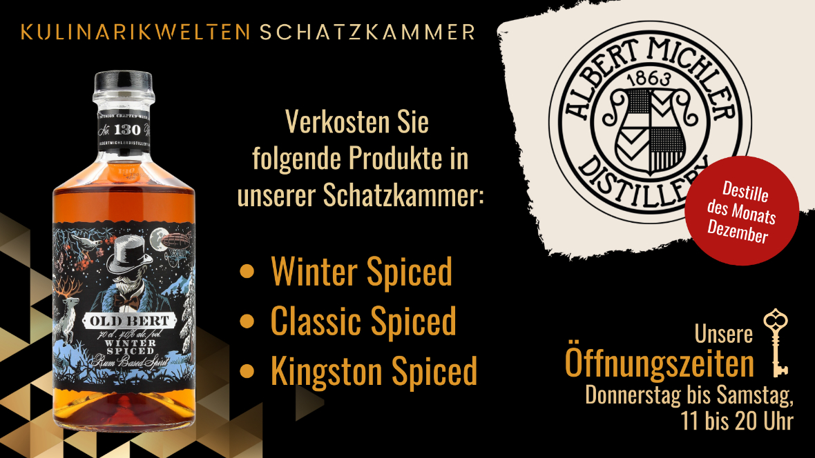 - Rum-Raritäten in verschiedenen Stilistiken sowie Einzelfass-Abfüllungen aus verschiedenen Herstellungsgebieten wie Jamaika, Kuba oder Madagaskar